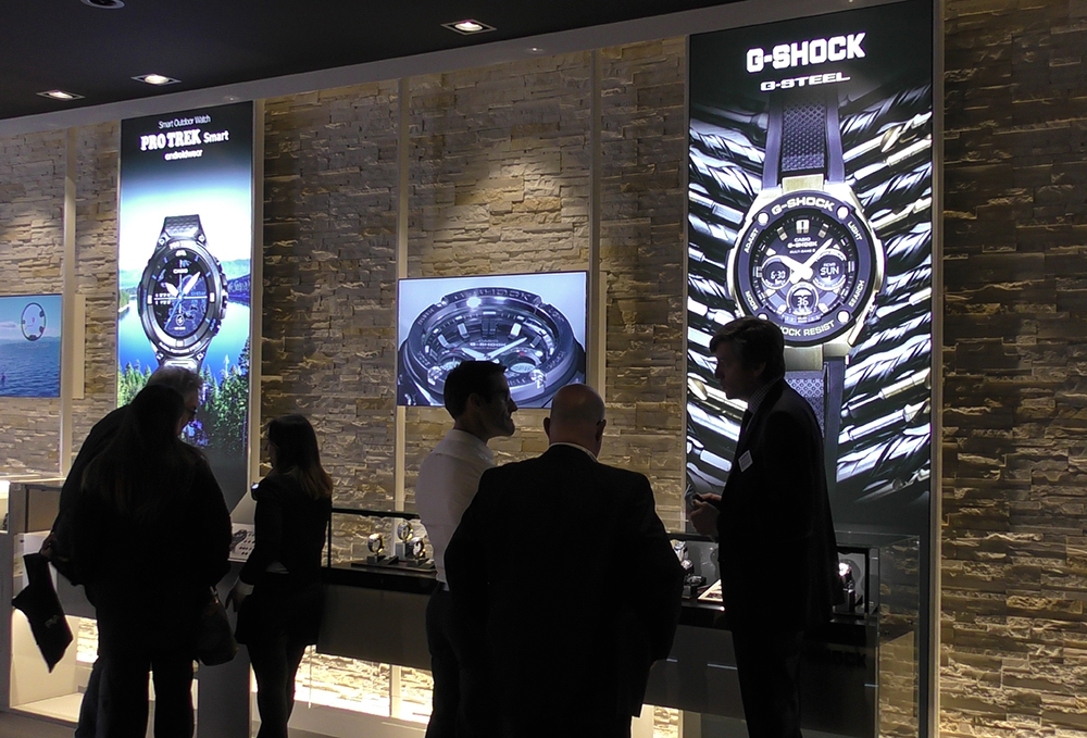Дилеры из многих городов (и не только российских) сейчас находятся в поиске моделей, которые будут давать выручку ежедневно. И этому запросу, пожалуй, больше всего удовлетворяет Casio, бренд знакомый и проверенный. Стенд компании поразил своим размахом, скоростью развития и настроем покорить мир.