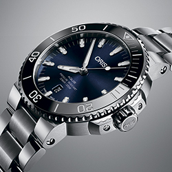 Еще один знаток по ярким часам – Oris остался с одной стороны верен себе, с другой – стал более универсальным. Так, модель Oris Aquis Date больше не предназначаются исключительно для подводных приключений, теперь их можно будет обнаружить выглядывающими из-под манжета классической рубашки.