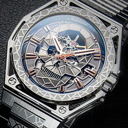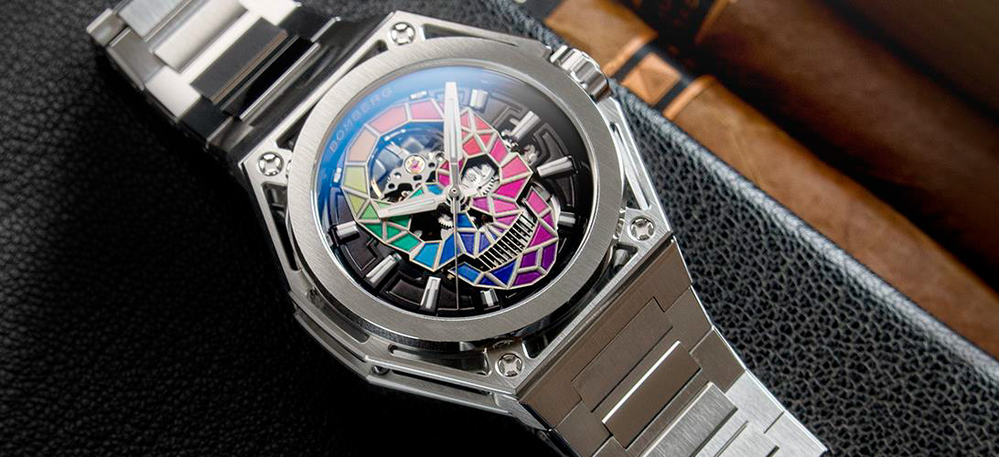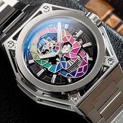 • Циферблат: Скелетонизированный, череп из цветных сегментов.
