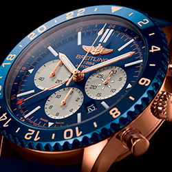 «Хронограф капитана самолета» – Chronoliner B04 – взмывает ввысь в новой эксклюзивной версии, выпущенной ограниченным тиражом в 250 экземпляров. Авиационный хронограф с привлекающим внимание циферблатом насыщенного синего оттенка и элементами из 18-каратного золота, керамический безель аналогичного цвета глубокой синевы, мануфактурный калибр Breitling B04 с функциональной системой двух часовых поясов – яркая новинка от швейцарской марки Breitling.