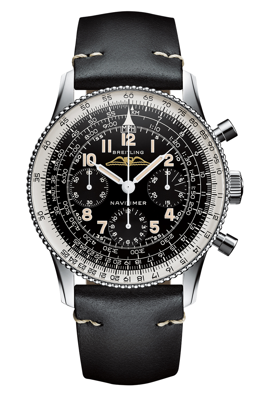 Диаметр корпуса из нержавеющей стали составляет 40,9 мм. Его дизайн разрабатывался специально для Navitimer Ref. 806 1959 Re-Edition, при этом профиль ушек для ремешка и покрытие полностью соответствуют оригинальной модели Ref. 806. Часы дополнены черным кожаным ремешком в винтажном стиле. Ценители коллекции Navitimer наверняка узнают знаменитую круглую логарифмическую линейку, установленную под сферическим акриловым стеклом – по форме она точно повторяет оригинал.