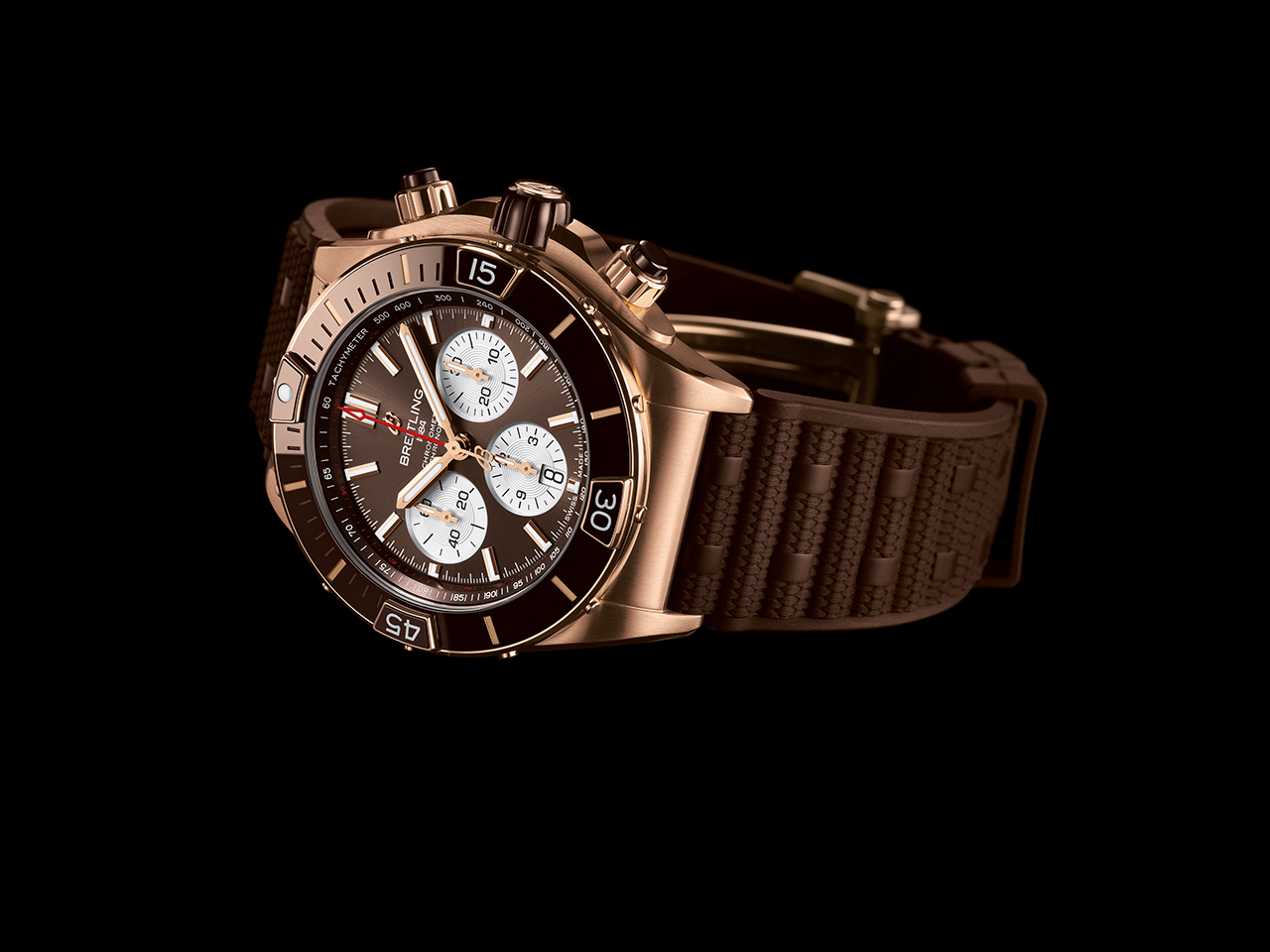 Как и в оригинальной версии Chronomat, райдеры защищены сапфировым стеклом. Те, что расположены у отметок «3 часа» и «9 часов», взаимозаменяемы, поэтому их можно использовать как для обратного, так и для прямого отсчета времени. Смелый характер коллекции Super Chronomat подчеркивается диаметром корпуса 44 мм. В новой модели реализованы такие нововведения, как безель из нержавеющей стали с керамической инкрустацией (впервые в Chronomat) и возможность выбора ремешка – каучукового в стиле Rouleaux или оригинального металлического с клипсой-бабочкой. Новый каучуковый ремешок создан с использованием новейшей технологии литья под давлением. Представлены три варианта текстуры – матовая, глянцевая и в стиле плетения – они придают модели особый стиль.
