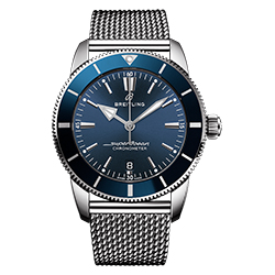 Хронометр Superocean Héritage II B20 Automatic 44 по праву считается элегантной и яркой интерпретацией этой коллекции. Часовая модель с тремя стрелками оснащена механизмом Manufacture Caliber B20. Часы из нержавеющей стали доступны в двух вариантах: с черным циферблатом на черном каучуковом ремешке Aero Ocean Classic и с синим циферблатом и стальным браслетом Ocean Classic.