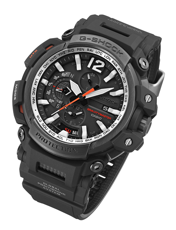 Новая модель ударопрочных часов GPW-2000 от Casio пополнила авиационную серию GRAVITYMASTER, которая является частью линейки G-SHOCK. Новинка оснащена тройными модулями с активным механизмом GPS Hybrid Wave Ceptor с Bluetooth, отображающими точное время в любой точке мира. Модуль использует первую в мире тройную систему синхронизации времени*1, которая получает радиочастотный и спутниковый GPS-сигнал для калибровки времени. Подключаясь к серверам единого времени и соединяясь со смартфоном, данный модуль автоматически обновляет внутренние данные по часовым поясам и летнему времени (DST).