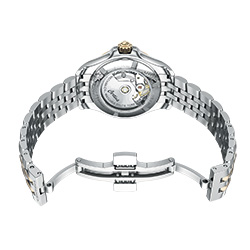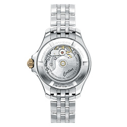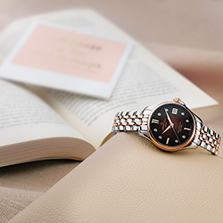 Эти часы – образец универсальности. Круглый корпус из нержавеющей стали диаметром всего 34,5 мм заключает в себе всю мощь современного швейцарского часового искусства. В дизайне использованы классические элементы: бриллиантовые часовые отметки, фасетированные стрелки, циферблат с перламутровой отделкой или гильоше «Солнечные лучи» в сочетании с современными цветовыми комбинациями. Среди них полированная нержавеющая сталь с акцентами цвета розового или желтого золота, универсальный черный или благородный коричневый. Плотно прилегающий металлический браслет с пятью рядами звеньев, застежкой-бабочкой и кнопками комфортно и стильно обхватывает запястье.