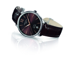 - коричневый ремешок соответствует версии с коричневым циферблатом, метками и стрелками с PVD-покрытием розовым золотом;