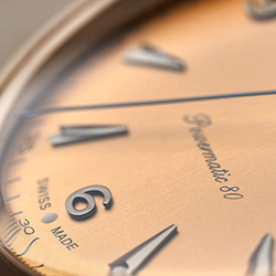Часы DS Powermatic 80 вдохновлены популярной моделью DS Chronograph Automatic, выпущенной в 2020 году. В отличие от более крупной версии, новая модель с тремя стрелками заключена в корпус диаметром 40 мм из нержавеющей стали или с PVD-покрытием цвета розового или желтого золота. Сапфировое стекло обеспечивает оптимальный обзор циферблата и напоминает дизайн исторических моделей. Утонченные стрелки подчеркивают винтажный стиль: тонкая классическая секундная стрелка с воронением и часовая, минутная стрелки с покрытием Super-LumiNova®. Слегка выпуклые циферблаты выполнены в сияющем белом, искрящемся золотом, темно-синем, зеленом или коричневом оттенке с изысканным гильоше «Солнечные лучи». Ремешки, которые легко можно снять и заменить в любой момент благодаря системе быстрой замены ремешка, добавляют стильные акценты: современный ремешок NATO в бело-синюю полоску или запатентованный кожаный ремешок антрацитового, светло- или темно-коричневого оттенков.