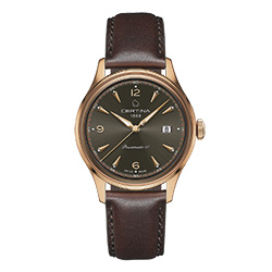 • C038.407.36.087.00 Коричневый циферблат, корпус из нержавеющей стали с PVD-покрытием цвета розового золота и темно-коричневый кожаный ремешок.