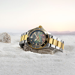 Круглый корпус из нержавеющей стали с однонаправленно вращающимся безелем с керамическими вставками подчеркивает динамичный характер модели. Лаконичный циферблат с покрытием Super-LumiNova® на стрелках и индексах выполнен в современном дизайне. Суперэлегантная двухцветная версия представлена в черном или белом перламутре, дополненном сияющими бриллиантовыми индексами и акцентными деталями цвета желтого золота. Также доступны модели с белым, синим или черным лакированным циферблатом в корпусе из нержавеющей стали.