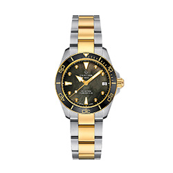 C032.007.22.126.00 Черный перламутровый циферблат, бриллиантовые индексы, двухцветный браслет из нержавеющей стали.