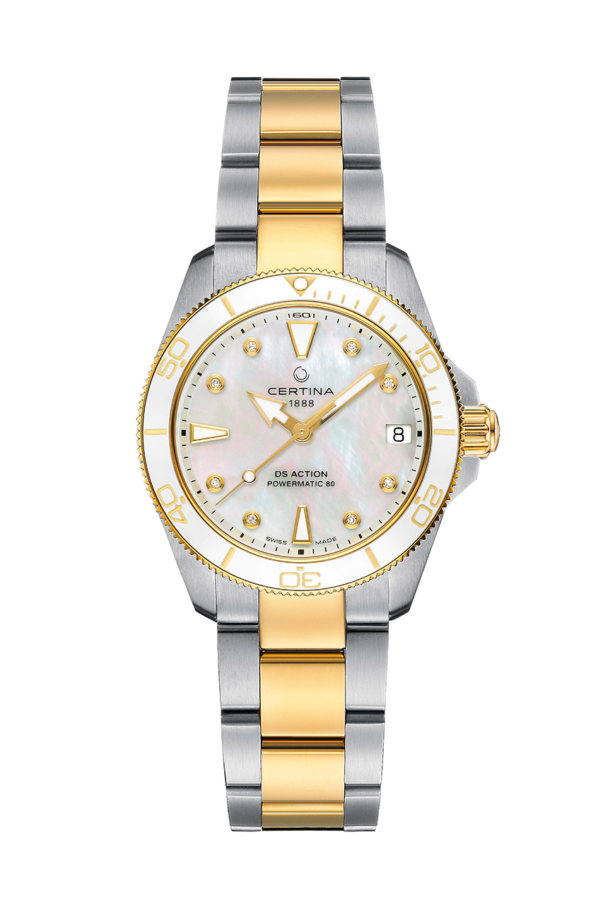 Наша голубая планета получила такое название благодаря бескрайнему мировому океану. Именно он заложил начало жизни на Земле, ему посвящено огромное количество легенд, и множество людей стремятся к нему всю свою жизнь. Швейцарская часовая марка Certina также нередко черпает вдохновение в морской стихии. Ее новые часы DS Action 34,5 мм выполнены в ярко выраженном морском стиле, который сочетается с земной точностью и надежностью. Эти современные наручные часы впечатляют игрой контрастов: изящный внешний вид сочетается со спортивной динамичностью, сатинированная сталь – с блестящими акцентными деталями, а современный дизайн – с традиционным механическим калибром.