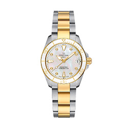 C032.007.22.116.00 Белый перламутровый циферблат, бриллиантовые индексы, двухцветный браслет из нержавеющей стали.