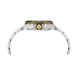 - Из трех звеньев из нержавеющей стали с сочетанием двух оттенков (PVD-покрытие цвета желтого золота).