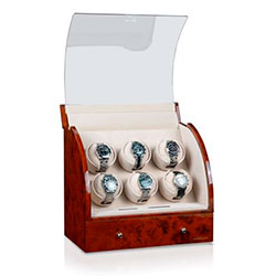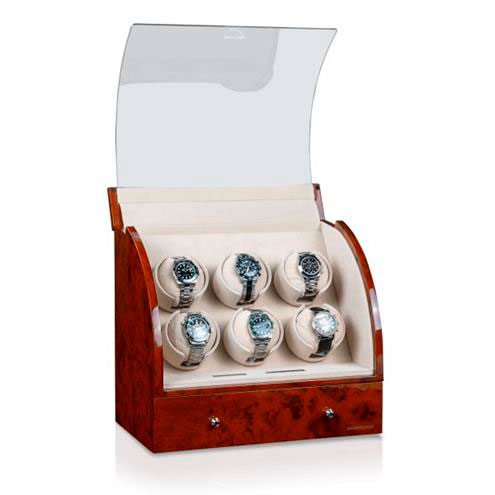 Корпус из натурального шпона капового дерева (Burlwood) придаёт аксессуару изысканный вид, а отделка из велюра внутри обеспечивает бережное хранение коллекции. Благодаря шести независимым программируемым моторам, Watch Winder Basel 6 подходит для большинства автоматических калибров, обеспечивая точность и надёжность работы ваших часов.