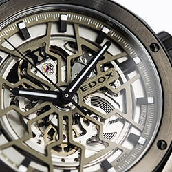 Скелетонизированный дизайн позволяет владельцу мельком увидеть завораживающие, сложные движения автоматического механизма калибра 853. И даже находясь под водой или при слабом освещении, Delfin Mecano обеспечивает кристально четкое отображение времени благодаря покрытию SuperLuminova на стрелках и индексах. 12-гранный безель Delfin Mecano повторяет форму классических моделей Delfin 70-х годов и является напоминанием о том, что хотя Edox постоянно расширяет границы часового дела, она всегда помнит о своем наследии.