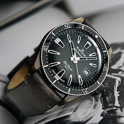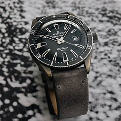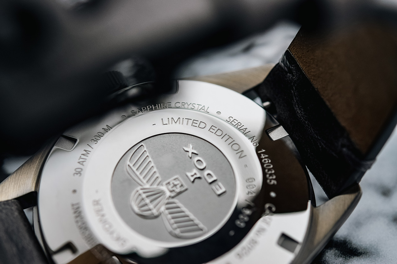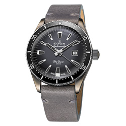 Еще одним «винтажным» штрихом является специальное покрытие, нанесенное на ремешок из серой кожи. Покрытие создает «складки» на ремешке – еще один ностальгический штрих. SkyDiver Date Automatic также поставляется с альтернативным ремешком из коричневой кожи, который можно легко заменить. Под капотом находится механизм с автоподзаводом Edox Calibre 80, изготовленный швейцарским специалистом Sellita, а внешний керамический безель, устойчивый к царапинам, обеспечивает практичный инструмент для расчета времени погружения на глубину до 300 метров ниже уровня моря.