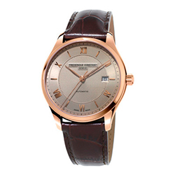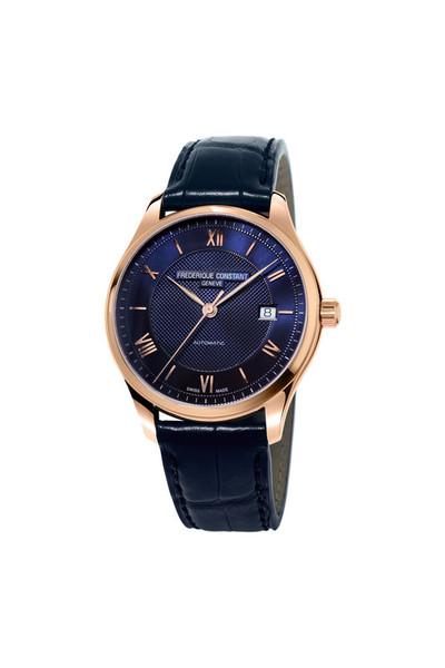 Часы Frederique Constant из семейства Classics оснащены автоматическим часовым механизмом FC-303 с 38-часовым запасом хода. Гильошированный циферблат темно-синего или светло-серого цвета показывает часы, минуты, секунды и дату. Окошко указателя даты находится в положении «3 часа». Часы в полированном стальном корпусе диаметром 40 мм носятся на ремешке из телячьей кожи с тиснением под крокодиловую кожу. Стальная модель с темно-синим циферблатом в качестве крепления имеет полированный браслет из нержавеющей стали.