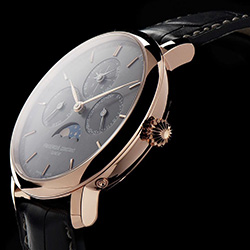 Эти два новых дополнения подчеркивают серый циферблат с украшением в виде солнечных лучей и нанесенными индексами с перлажем и круглым декором Côtes de Genève на механизме. Все они выполнены из изысканной полированной нержавеющей стали или покрытого розовым золотом полированного корпуса из нержавеющей стали. Как и вечный календарь эти часы показывают не только лунные циклы, но и минуты, часы, дату, день, месяц и год в четырех цифрах. Каждый из них расположен стратегически, чтобы предложить эстетически приятный и легко читаемый циферблат. Дата указывается на отметке «3 часа», день недели – «9 часов», месяц – «12 часов», а високосный год – «6 часов».