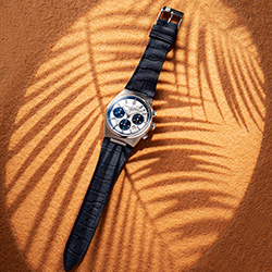 Новый хронограф Highlife Chronograph Automatic представлен в трех взаимодополняющих вариантах исполнения — спортивном, роскошном и городском. Первая версия — из стали — будет пользоваться наибольшим спросом, так как она ограничена 1888 экземплярами и единственная из всех комплектуется двумя дополнительными браслетами. Таким образом, можно выбрать между ремешком из темно-синей телячьей кожи с отделкой из нубука, каучуковым ремешком в тех же тонах или стальным браслетом с тремя рядами звеньев, в котором чередуются полированная и сатинированная поверхности. В зависимости от индивидуальных предпочтений они подчеркнут либо белый циферблат, либо синие счетчики и фланец этих редких коллекционных часов, каждый экземпляр которых индивидуально пронумерован.