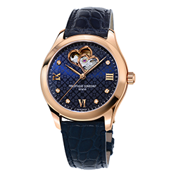 Фирменное окошко Heart Beat уже несколько лет является символом успеха марки Frederique Constant. Это яркий пример нестандартного подхода бренда к отображению времени. Декоративное окошко с выпуклым сапфировым стеклом позволяет в деталях рассмотреть механизм часов. Находящееся в положении «12 часов», оно отлично гармонирует с отделкой циферблата «солнечные лучи». Бриллианты и римские цифры придают особое великолепие циферблатам Heart Beat, выдержанным в четырех новых оттенках. При каждом взгляде на циферблат наслаждаешься великолепием дизайна и мастерским исполнением часов.
