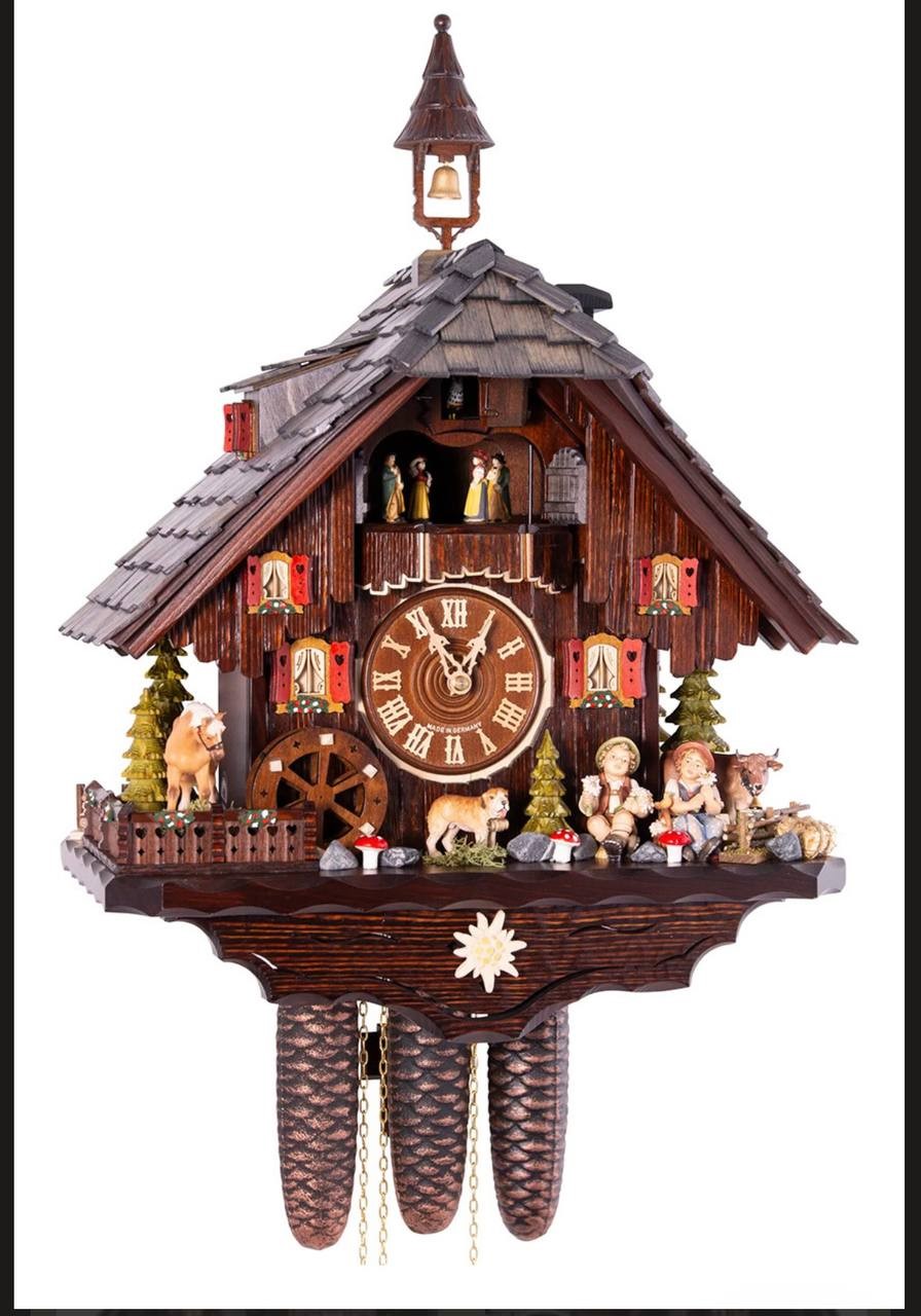Часы оживают каждые полчаса: кукушка выходит, наклоняется и произносит своё знаменитое «ку-ку», а каждый полный час — повторяет его столько раз, сколько показывает время. Сразу после этого начинается танец: на балкончике вращаются фигурки под музыку, две мелодии чередуются.