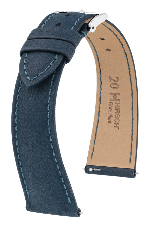 Контрастная прострочка, классическая пряжка HIRSCH придают ремешку изысканный и универсальный вид. Два цвета — тёмно-синий и джинсовый — делают модель уместной как с классическими, так и с повседневными часами. Fibre Plant — это выбор в пользу ответственного потребления без компромиссов в дизайне и удобстве.