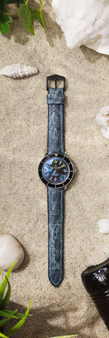 Особенностью коллекции является использование тончайших сланцевых пластин в качестве внешнего слоя. Этот природный материал придаёт каждому ремешку неповторимую текстуру, цвет и характер. Серия представлена в четырёх выразительных оттенках, каждый из которых символизирует определённое время года: насыщенный зелёный (весна), глубокий синий (лето), тёплый коричневый (осень) и строгий чёрный (зима). Такое решение делает каждый ремешок не только функциональным, но и эстетически привлекательным - настоящим произведением природного искусства.