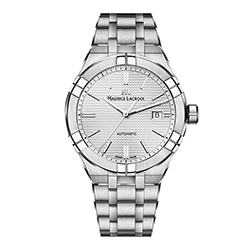 Уровень водонепроницаемости часов AIKON Automatic диаметром 42 мм достигает 200 метров. Циферблат представлен в трех оттенках: синем, серебристом и антрацитовом. Цветовое оформление гармонирует со стальным браслетом/кожаными ремешками черного, синего или коричневого цвета с логотипом MauriceLacroix. Благодаря изящной застежке-бабочке браслеты и ремешки удобны и просты в использовании.