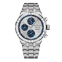 Яркий дизайн модели AIKON Automatic Chronograph заслуживает отдельного внимания. В корпус диаметром 44 мм установлен механизм хронографа с автоподзаводом. Уровень водонепроницаемости составляет 200 метров за счет использования завинчивающихся заводной головки, задней крышки и кнопок. На этапе запуска линии AIKON Automatic компания представляет пять версий хронографов с циферблатами трех цветов: синим, серебристым и черным. Версия с серебристым циферблатом в актуальном стиле «панда» дополнена контрастными счетчиками синего цвета.