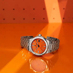 Линейку с ограниченным летним выпуском дополняют две яркие модели, размещенные в 42-миллиметровых стальных корпусах. Вновь появляется циферблат бирюзового оттенка Tanager, но на этот раз к нему присоединился яркий вариант циферблата Orange Soda. Этот цвет повторяет оттенок полуденного солнца и демонстрирует энергичный характер, который не ослабевает даже при появлении облаков. Как и во всех моделях этой серии, оранжевый циферблат Soda показывает часы, минуты, секунды и дату, но без серебряных акцентов в пользу черных тонов – тонкая деталь, усиливающая единство.