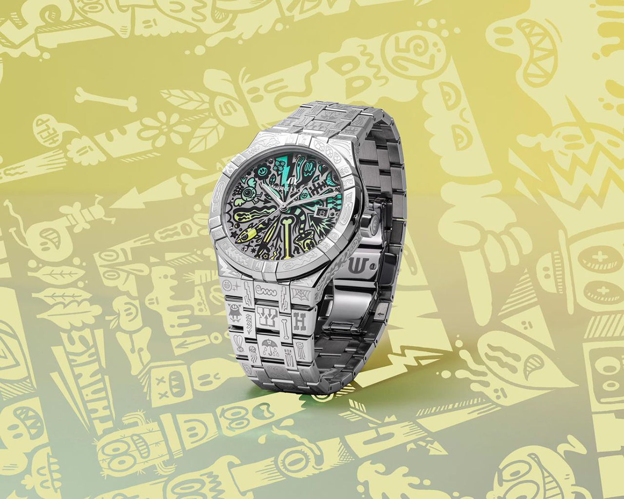 AIKON Automatic Wotto от Maurice Lacroix — это не просто лимитированная серия, а настоящая галерея городского искусства, которую можно носить на запястье. Представленная в 2025 году и выпущенная ограниченным тиражом в 1000 экземпляров, модель стала результатом сотрудничества бренда с уличным художником Уотто (Wotto), чьё творчество объединяет хаос, доброту и нескрываемую эмоциональность. Бренд продолжает серию Urban Tribe, ещё глубже исследуя пересечение современного искусства и высокого часового ремесла.