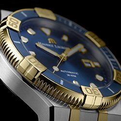 Еще одна новая версия AIKON Venturer выполнена из стали с позолоченными элементами оттенка желтого золота (2N). Если раньше модель была чисто функциональной, то сейчас Venturer предстает в новом свете. Теплый блеск драгоценного металла на звеньях браслета, заводной коронке и характерных для всей коллекции AIKON выступах на безеле придают особую роскошь этим часам. Темно-синий циферблат с отделкой «солнечные лучи» в сочетании с керамическим безелем того же оттенка подчеркивают спортивный характер модели. Выбор желтого золота и насыщенного синего цвета придает этим часам винтажный стиль в духе 80-х – новое направление в палитре Maurice Lacroix. Система замены браслета Easychange позволяет владельцу часов изменять их стиль за долю секунды. Данная модель, оснащенная автоматическим механизмом ML 115, пополнит основную коллекцию AIKON Venturer 43мм.