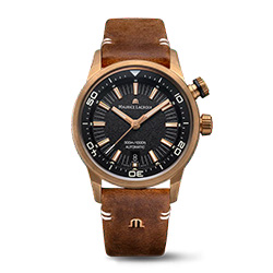 Первая модель выполнена в бронзовом корпусе диаметром 42 мм, который со временем приобретет уникальную патину, что придает часам винтажный вид. Чёрный циферблат украшен стрелками и метками золотистого цвета, покрытыми Super-LumiNova® для яркого свечения в темноте. Часы поставляются с коричневым кожаным ремешком, создавая элегантный образ. Эта модель выпущена ограниченным тиражом — всего 888 экземпляров.