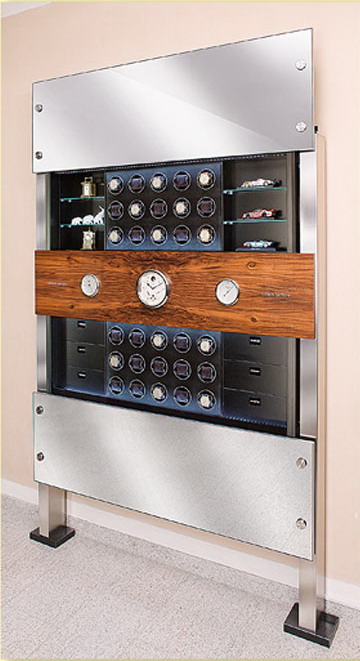 Кроме того, это изделие настолько уникально, что ни один ценитель высокого часового искусства не останется к нему равнодушным. Автоматический сейф представляет собой не только надёжное убежище для фамильных ценностей, но и настоящее средоточие достижений часовой инженерной мысли: встроенные часы  «Erwin Sattler Navis 24» с запасом хода на восемь суток, указатель GMT, календарь, барометр и термометр.
