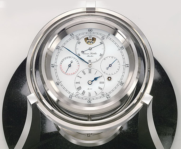 Этим прибором является новейшая модель «Tempus Mobile» с мануфактурным механизмом «Nautis marine clock» и имеющая двухнедельный запас хода. Для создания этого шедевра понадобилось по истине богатое воображение. Мастера мюнхенской мануфактуры учли при изготовлении часов очень важный факт. Дело в том, что все парусные суда находятся в строгом горизонтальном положении только тогда, когда скорость судна немного больше скорости ветра, а курс при этом полностью совпадает с его направлением. Во всех других случаях яхта всегда накренена в ту или иную сторону, в зависимости от расположения парусов.