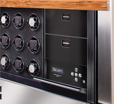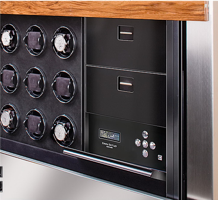 Внутреннее пространство сейфа не менее оригинально. Панели скрывают тридцать автоматических ячеек, созданных на основе запатентованной Erwin Sattler технологии «Beluwo». Эта технология обладает «способностью» настраивать с высокой точностью частоту, скорость и направление вращения каждой из ячеек. Электронная память сейфа хранит информацию более чем о пяти тысячах моделей различных часов. Она может спокойно пополнить свою базу данных новой информацией о недавно приобретённых часах, даже если у часов имеется незнакомый для неё модуль автоподзавода. Такая операция возможна благодаря тому, что в сейф встроен Bluetooth.