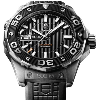 Коллекция "Aquaracer" специально созданная для представителей водных видов спорта пополнилась профессиональными часами для дайверов. Часы обладают водонепроницаемостью до 500 метров, имеют очень непростой 43-миллиметровый корпус, выполненный из сатинированной стали. Рант корпуса, вращающийся в одну сторону, имеет форму шестиугольника с зазубренными выступами, которые позволяют легко оперировать часами даже в водолазных перчатках.