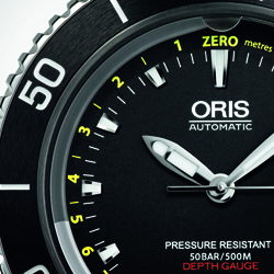 Безопасность подводного погружения – самая главная проблема дайверов, и именно на её решение была направлена новая разработка Oris – устройство точного измерения глубины погружения. Созданный индикатор глубины является неинерционным, поэтому он без промедления даёт информацию о текущей глубине, что, безусловно, очень удобно, особенно при декомпрессионных остановках на небольших глубинах.