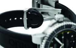 Новые дайверские часы «Oris Aquis Depth Gauge» комплектуются каучуковым ремешком и сменным металлическим браслетом. Ремешок снабжён настраиваемой раскладывающейся застёжкой, которая позволяет легко и быстро осуществлять настройку длины ремешка, даже в том случае, когда ремешок необходимо надеть поверх водолазного костюма. Кроме того, в конструкции каучукового ремешка предусмотрено специальное расширение в виде якоря. Этот «якорь», ещё одно изобретение Oris, он обеспечивает дополнительную безопасность – предотвращает случайное соскальзывание и падение часов с руки.
