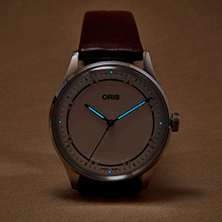К оформлению задней крышки в компании Oris также подошли творчески – она выполнена в виде кимвала, музыкальной тарелки. Внутри часов установлен механизм Oris 733 (на базе SW 200-1), его балансовая частота 28800 пк\час, запас хода 38 часов.