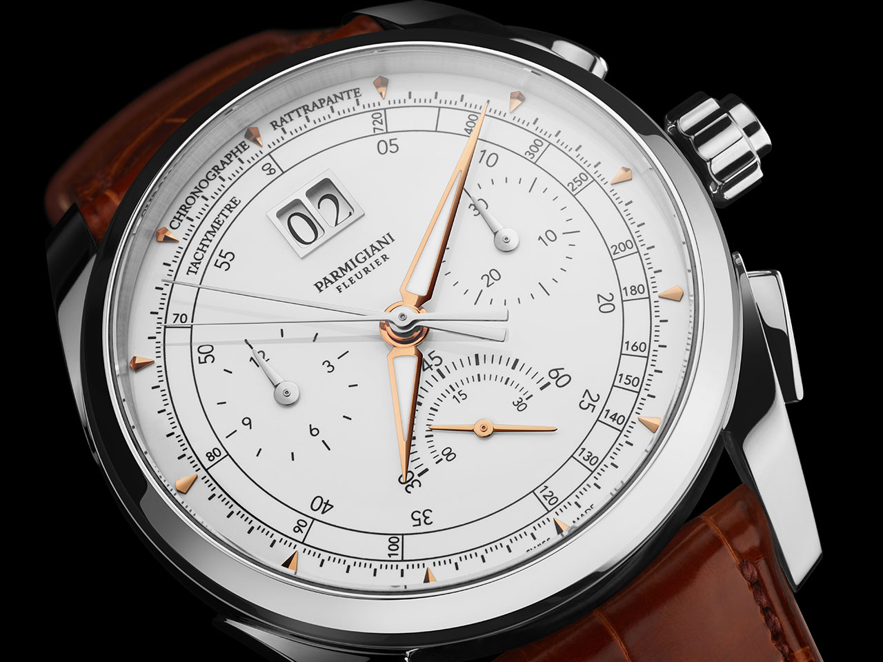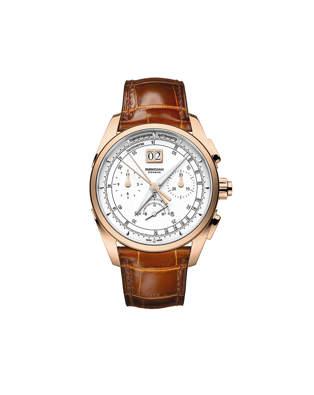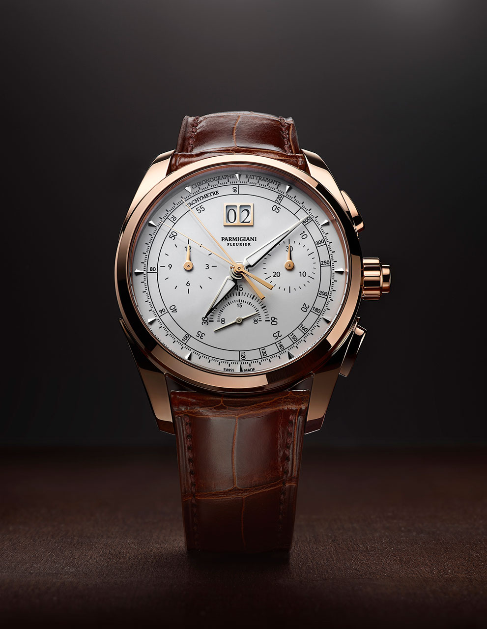 Основная идея производства – отсутствие дополнительных модулей – признак, который очень ценится знатоками часового мастерства. Каждый компонент должен быть встроен в механизм и удерживаться на одной платине. Поэтому дизайнеры начали работу с чистого листа, и после проведения большого количества исследований они разработали первый встроенный хронограф мануфактуры Parmigiani Fleurier. Этот процесс разработки занял более двух лет и был подкреплен 20-летним опытом марки, в том числе в изготовлении специальных инструментов. Этот часовой механизм с ручным подзаводом включает хронограф, сплит-функцию, большой указатель даты, и все это представляет одно единое целое.