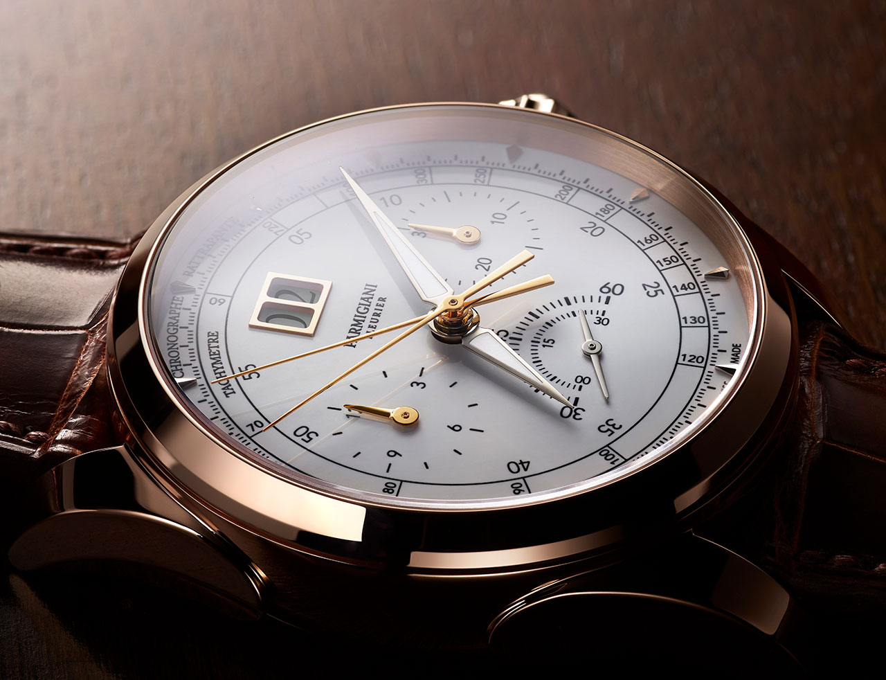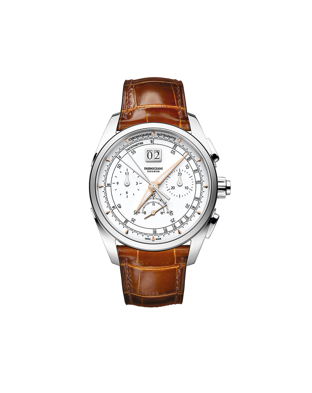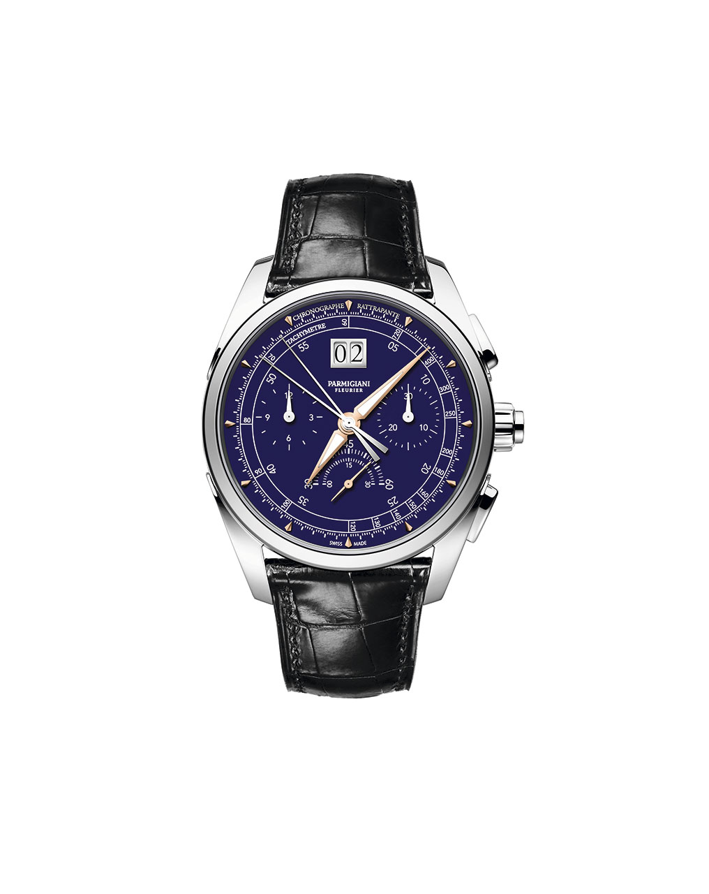 Основная идея производства – отсутствие дополнительных модулей – признак, который очень ценится знатоками часового мастерства. Каждый компонент должен быть встроен в механизм и удерживаться на одной платине. Поэтому дизайнеры начали работу с чистого листа, и после проведения большого количества исследований они разработали первый встроенный хронограф мануфактуры Parmigiani Fleurier. Этот процесс разработки занял более двух лет и был подкреплен 20-летним опытом марки, в том числе в изготовлении специальных инструментов. Этот часовой механизм с ручным подзаводом включает хронограф, сплит-функцию, большой указатель даты, и все это представляет одно единое целое.