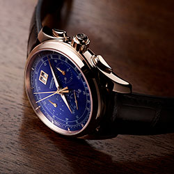 Интегрировать крупный указатель даты в калибр со встроенным хронографом – задача не из легких, учитывая существующие пространственные ограничения. Конструкторам удалось максимально увеличить полезную площадь поверхности часов, что позволило идеально разместить внутри даже диски диаметром 13 мм. В двойном окошке с накладными отметками из золота у отметки «12 часов» отображается дата.