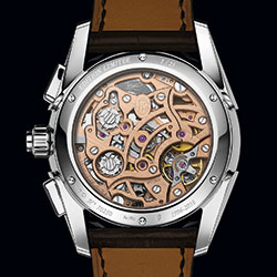 Второе колонное колесо управляет сплит-функцией абсолютно синхронно. При создании этого механизма перед часовыми мастерами была поставлена дополнительная задача: сделать «центры управления», два колонных колеса, полностью автономными, а также дать владельцу часов возможность рассмотреть их с задней стороны корпуса во время активации, остановки и обнуления хронографа и сплит-функции.