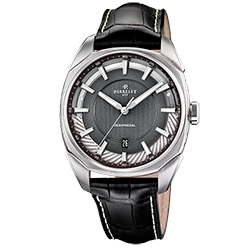 2. Perrelet LAB A 1100/2: стальной корпус, антрацитовый циферблат, чёрный кожаный ремешок. | |
