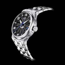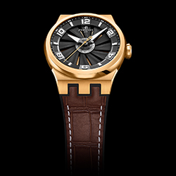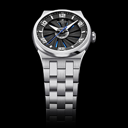 Часовые индексы на циферблате, а также часовая и минутная стрелки имеют люминесцентное покрытие, способствующее оптимальной читаемости циферблата при любых условиях освещения. Последний штрих – центральная секундная стрелка, выполненная в том же цвете, что и фон циферблата, заметный сквозь просветы между лопастями турбины.