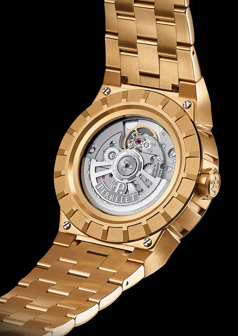• Заводная головка нового дизайна с логотипом Perrelet.