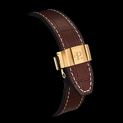 • Черный/коричневый ремень из полиуретана и телячьей кожи с выделкой под аллигатора и раскладывающейся застежкой с логотипом Perrelet.