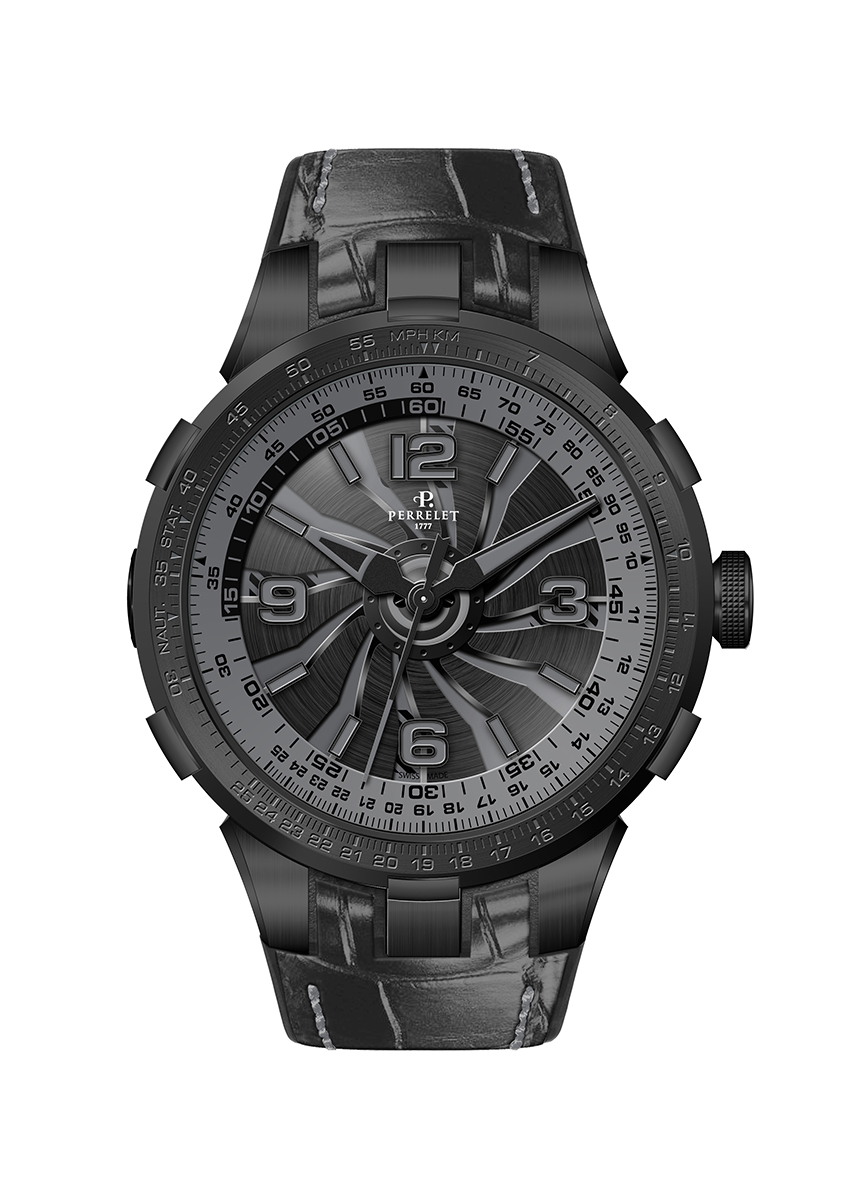 Модель Turbine Pilot оснащена механизмом с автоматическим подзаводом Perrelet P-331 собственного производства. Часы имеют 42-часовой запас хода и водонепроницаемость до 5 атмосфер. Сквозь сапфировое стекло можно любоваться механизмом с ажурным ротором, украшенным логотипом Perrelet. Ремешок выполнен из двух материалов: кожи аллигатора черного цвета и каучука с клипсовой застежкой из стали с черным PVD-покрытием и логотипом мануфактуры.