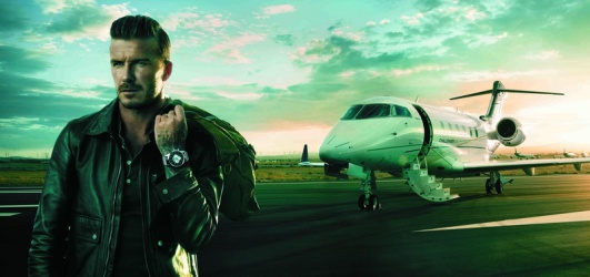 Съемки новой рекламной кампании проходили в знаковом месте – Дэвид Бэкхем изображен на взлетно-посадочной полосе аэро- и космодрома Мохаве, стоящим перед собственным реактивным самолетом с хронографом на руке. Концепция реализована знаменитым американским фотографом Энтони Мандлером.